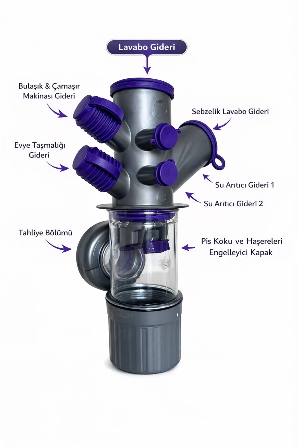 AQUENOX DRAINEXA ist ein Mehrfach-Waschbeckensiphon mit 6 Anschlüssen, der für Küchen, Badezimmer und Waschküchen entwickelt wurde. Er vereint die Abflüsse von Geschirrspüler, Waschmaschine und Waschbecken in einem einzigen kompakten System. Dank des integrierten Geruchsverschlusses werden Abwassergerüche und Rückstau verhindert.